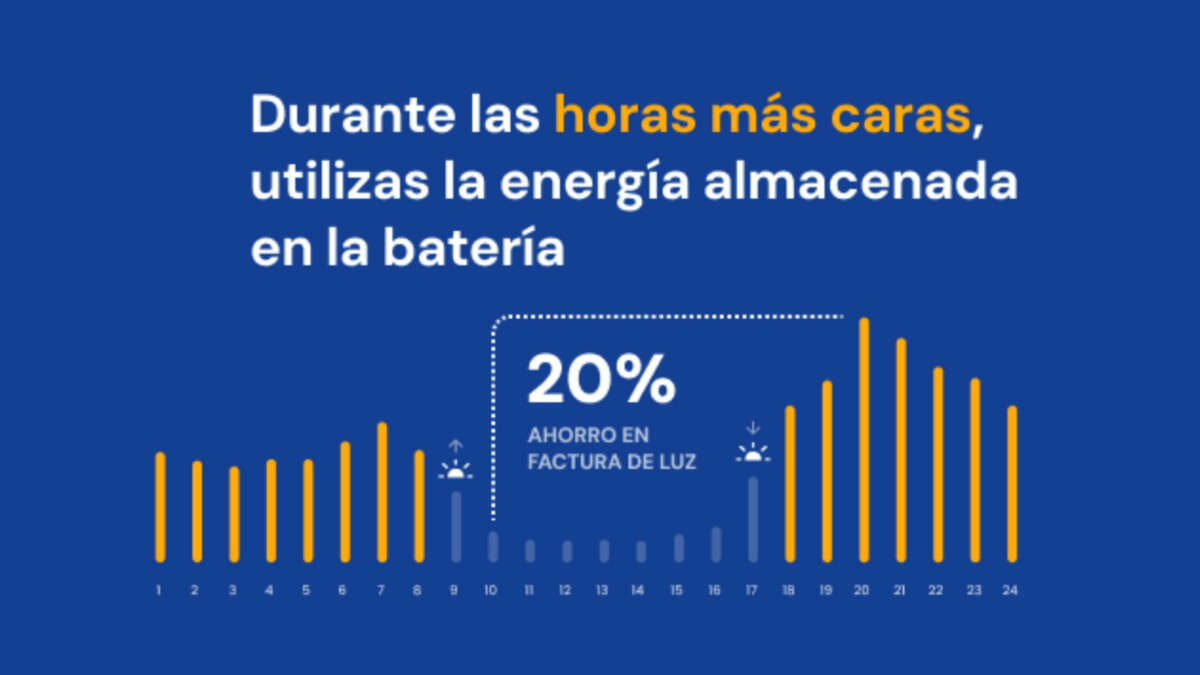 Así, durante las horas valle, es decir, cuando la electricidad cuesta menos, la batería almacena energía para liberarla en las horas punta, cuando el precio se dispara. El resultado es un gran ahorro en la factura eléctrica sin necesidad de cambiar tus hábitos de consumo.
