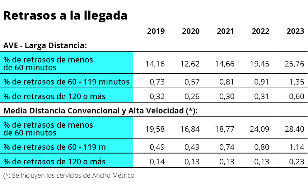 En el Informe de Responsabilidad Social y Gobierno Corporativo de 2023, Renfe aflora datos sobre quejas y reclamaciones recibidos muy superiores a los registrados en años anteriores; una caída en la valoración de la calidad de sus servicios por parte de los viajeros; y un fuerte aumento de los retrasos de sus trenes AVE, y media distancia.