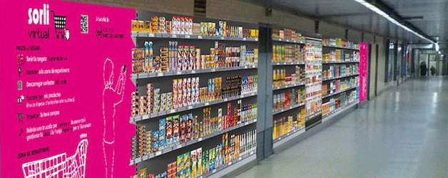 La cadena de supermercados catalana Sorli Discau abrirá su nuevo establecimiento los próximos días. Se trata de un supermercado virtual en la estación de tren de Sarrià, donde se ha instalado una estantería simulada con códigos QR (de respuesta rápida) que simula la estantería de un supermercado.