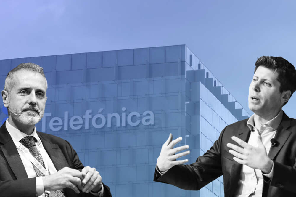Marc Murtra (Telefónica) junto a Sam Altman (OpenAI) en un montaje para Economía Digital