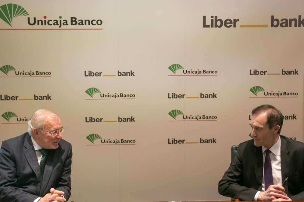 El presidente de Unicaja, Manuel Azuaga y el presidente de Liberbank, Manuel Menéndez.
