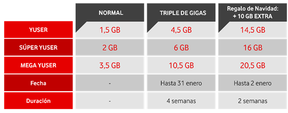 La compañía indica, además, que los clientes actuales que renueven su tarifa esta Navidad tendrán entre 14,5 y 20,5GB extra, manteniendo los precios de sus planes.