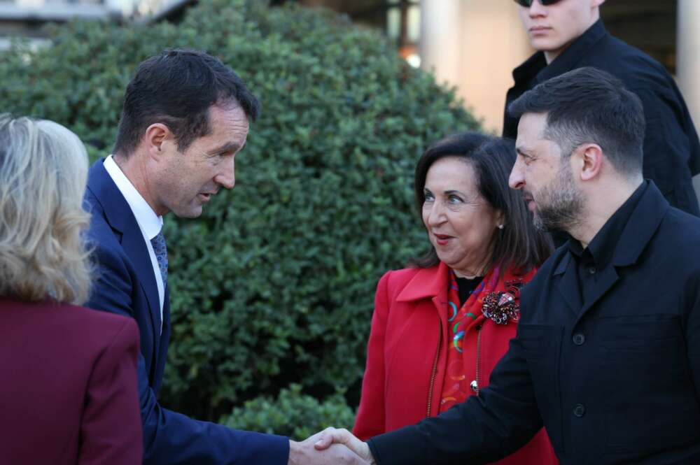 El presidente de Ucrania, Volodímir Zelenski, ha visitado la sede de Indra acompañado de la Ministra de Defensa, Margarita Robles.
