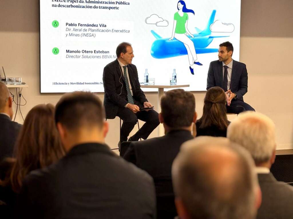 BBVA ha reunido a directivos, expertos y empresas en A Coruña para abordar los desafíos de la movilidad sostenible y la descarbonización del transporte. El encuentro se celebró este jueves en el Nordés Club Empresarial y contó con la participación de representantes del sector público, como el director del Instituto Enerxético de Galicia (INEGA), Pablo Fernández Vila; y directivos de compañías como Monbus, Grupo TT o Repsol, a los que se sumaron especialistas en sostenibilidad y movilidad.