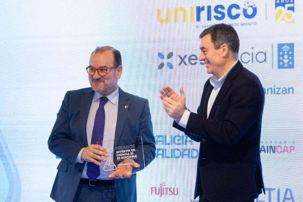 La presente edición también concedió sendos premios honoríficos para reconocer la trayectoria y aportación de dos figuras que han contribuido al crecimiento y consolidación del foro Investir en ciencia si é rendible. En el primer caso, el galardón fue para el rector en funciones de la USC, Antonio López, por su trabajo desde diferentes perspectivas para que el emprendimiento científico y tecnológico se desarrolle desde la Universidad de Santiago. El jurado valoró que Antonio López, “desde el primer momento, ha sido un firme defensor de estas jornadas a las que siempre nos ha brindado un apoyo incondicional”.