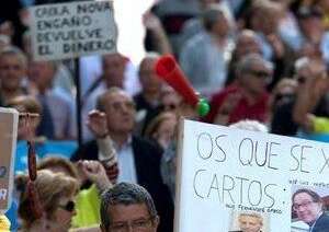 A la vez que se celebraba la reunión, grupos de afectados por las preferentes se manifestaron en A Coruña y en Vigo