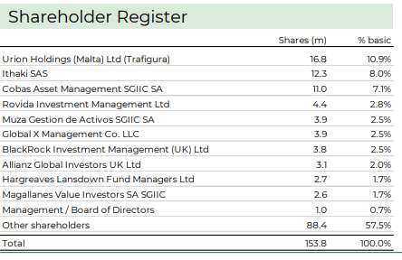 Sus dos principales accionistas hace un año, Trafigura y Cobas, la gestora de fondos del inversor ferrolano Francisco García Paramés, vendieron grandes paquetes de títulos. El propio grupo realizó una colocación de 150 millones de euros (12,73 millones de acciones) para financiar su proyecto gallego y las nuevas iniciativas que está poniendo en marcha en torno a su principal activo, el complejo minero de Riotinto en Andalucía. Tras estas operaciones, el número de accionistas con menos de un 1% de los títulos, pasó de representar el 29,7% del capital de la compañía en agosto del año pasado al 57,5% actual.