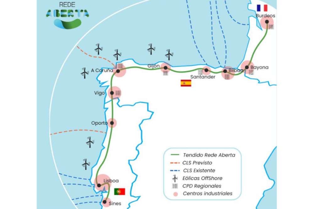 Rede Aberta desarrollará el proyecto Atlantic Arc, que permitirá realizar el estudio de una red troncal de fibra óptica terrestre de alta capacidad para conectar Burdeos (Francia) con Sines y Lisboa (Portugal), pasando por las comunidades de Euskadi, Cantabria, Asturias y Galicia, con una longitud superior a los 2.000 kilómetros.