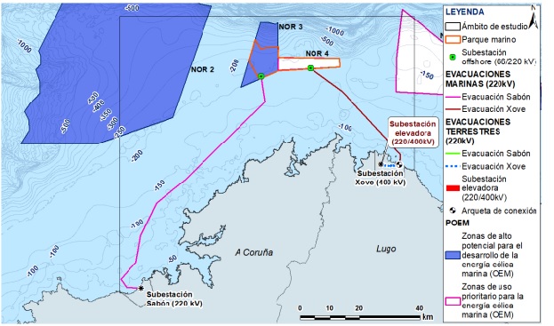 Bluefloat también apuesta por la Costa Ártabra en su proyecto Nordés, con un parque entre Cedeira y Cariño con algo de más de 500 MW y 35 molinos flotantes en su primera fase.