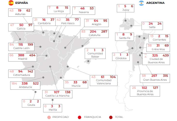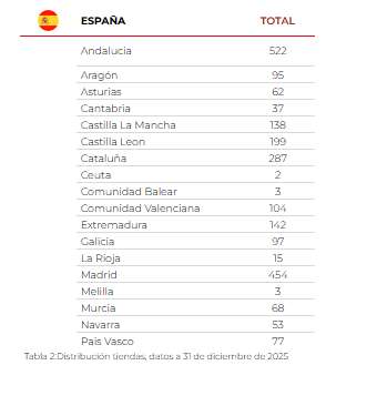 Red de tiendas de DIA en España y Argentina a cierre de 2025