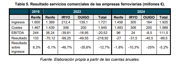 Pérdidas de Ouigo e Iryo