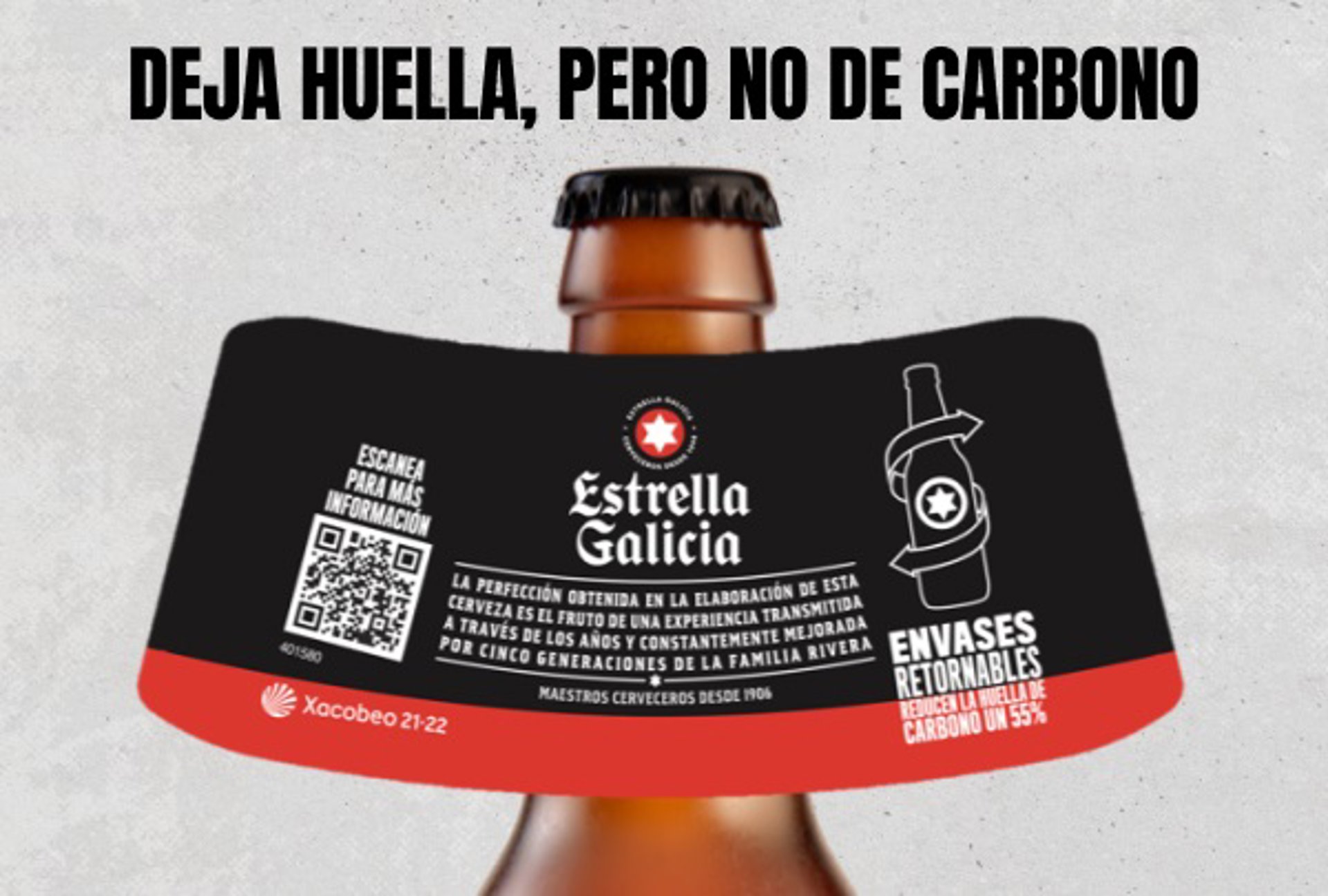 Con este movimiento, la cervecera pretende concienciar a los consumidores sobre la importancia de impulsar la economía circular para reducir la huella de carbono y avanzar en la lucha contra la emergencia climática. Se trata de un sello QR que, al ser escaneado, dirigirá directamente a una página web en la que los usuarios podrán comprobar con datos cómo el consumo de este tipo de formatos contribuye a reducir la huella de carbono en un 55%.
