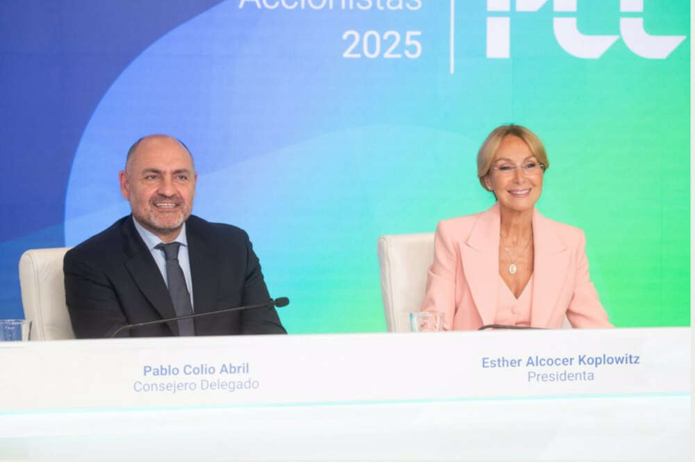 Esther Alcocer Koplowitz y Pablo Colio durante la junta de accionistas de FCC / EP