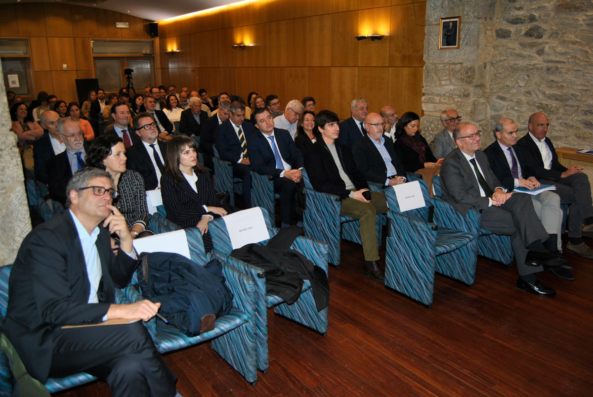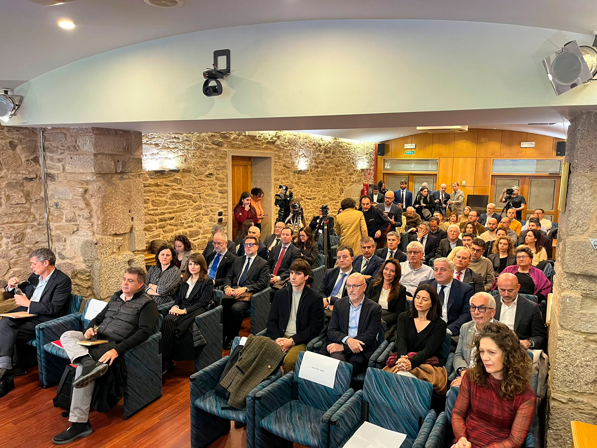 Vista general de los asistentes a la presentación del informe, celebrado en la sede de la CEG en Santiago, durante la primera de las mesas de debate / Pablo Ares Heres