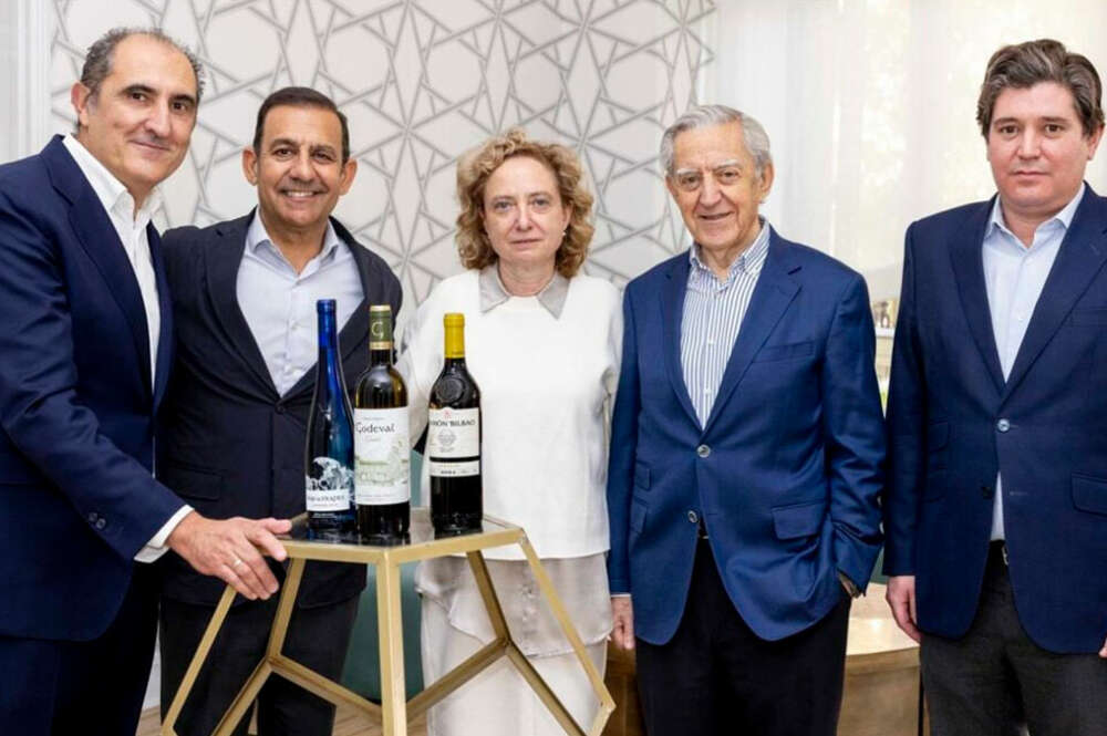 Rodolfo Bastida, director técnico de las bodegas Zamora Company y Javier Pijoan, CEO de Zamora Company, Junto a Araceli Fernández, Honorato López y Eduardo López de Bodegas Godeval / Zamora Company