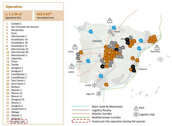A cierre de ejercicio, la inmobiliaria disponía de 1,2 millones de metros cuadrados de superficie bruta alquilable en su portfolio, con una presencia especialmente fuerte en el nudo logístico de Guadalajara, conformando el eje central con las naves de Madrid y Toledo. Montepino crece también en el corredor Mediterráneo y en Zaragoza, donde vendió el almacén de Zara a Inditex.
