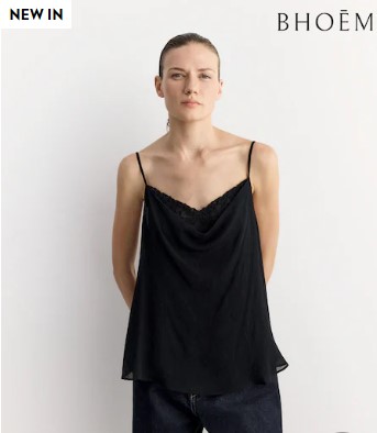 Se trata de un top negro de lencería drapeada y bordada que figura a un precio de 39 libras (unos 44,4 euros al cambio actual). Elaborada al 100% con viscosa, esta es la prenda con la que debuta en el mercado la nueva marca que Next ha puesto en marcha y que está enfocada al público femenino.