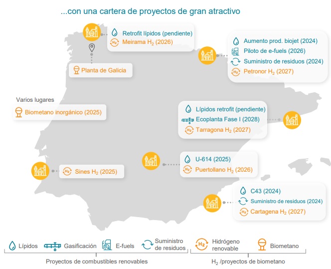 Lo que sí cuenta ya con una fecha de puesta en marcha es el proyecto de hidrógeno verde que la compañía impulsa en Meirama junto a Naturgy y a Reganosa. Repsol indica que “el biometano y el hidrógeno renovable serán también importantes para la descarbonización de los complejos industriales”.
