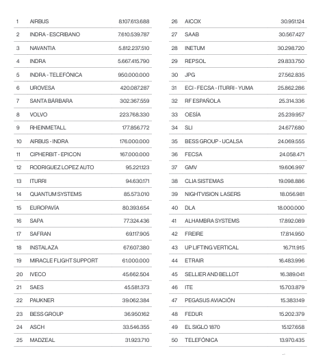 50 mayores adjudicatarios, según el informe del Observatorio de Seguridad Nacional