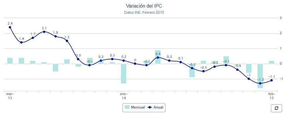 El IPC encadena su octavo mes de bajadas y se queda en el -1,1% en febrero