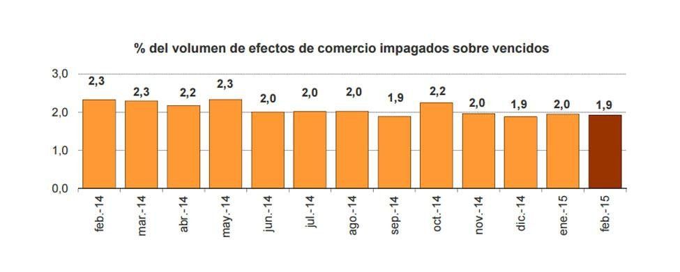 La tasa de impago se queda en el 1,9% en febrero, cuatro décimas menos que el mismo mes del año anterior. Las familias y empresas pagaron 11.444 millones del total de los vencimientos de comercio, cuyo valor alcanzó los 11.668 millones.