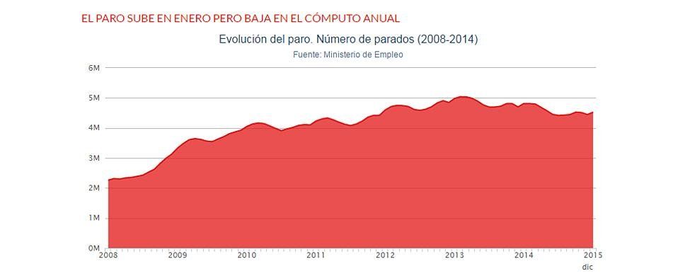 El número de parados registrado en las oficinas de los servicios públicos de empleo ha crecido en enero, pero menos de lo esperado. La cifra de desempleados se ha situado en 4.525.691 personas, tras subir en 77.980 con respecto al mes anterior. Su mejor dato en un inicio de año desde 2007, año que para muchos marca el inicio de la crisis.