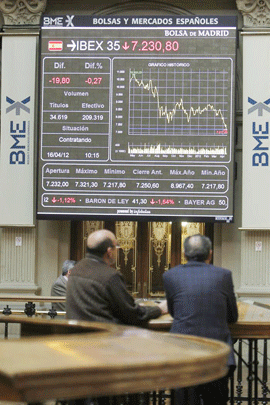 En el mercado de deuda pública, la prima de riesgo descendía ligeramente a los 412 puntos básicos, aunque con la rentabilidad del bono a 10 años peligrosamente estabilizada en el 5,83%.