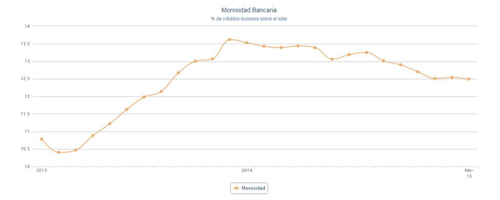 Los impagos bajaron ligeramente hasta el 12,50% desde el 12,54% de enero. La tasa está por debajo de la que se registró en diciembre, cuando se llegó al 12,51% después de cuatro meses consecutivos de caídas. Si se compara con el año anterior, el descenso es de casi un punto porcentual al cerrar febrero de 2014 en el 13,42%.