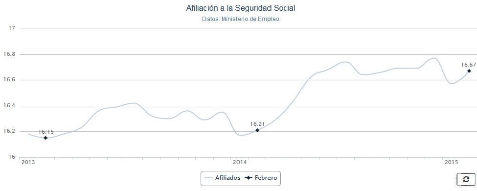 Se trata del mejor dato de un febrero desde 2007, cuando la ocupación creció en 137.400 personas. El repunte de este mes supera en dos veces el registrado en el mismo periodo de 2014, cuando se sumaron únicamente 38.694 cotizantes.