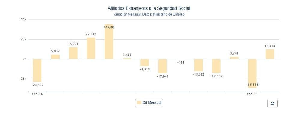 El trabajador extranjero regresa. La Seguridad Social ganó 12.313 cotizantes extranjeros en febrero, un 0,8% más en relación con el mes anterior. El número de inmigrantes en alta es de algo más de 1,5 millones de ocupados, según los datos del Ministerio de Empleo.