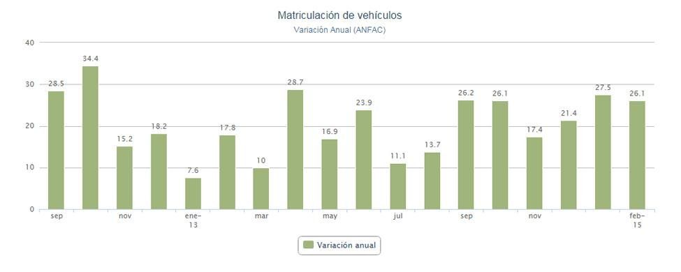 La venta de turismos ha crecido el 26,1% en febrero hasta las 86.717 unidades, la cifra más alta para el segundo mes del año desde 2010. El repunte del mercado llega al 26,7% si se cuenta desde el 1 de enero, con un total de 154.836 matriculaciones.