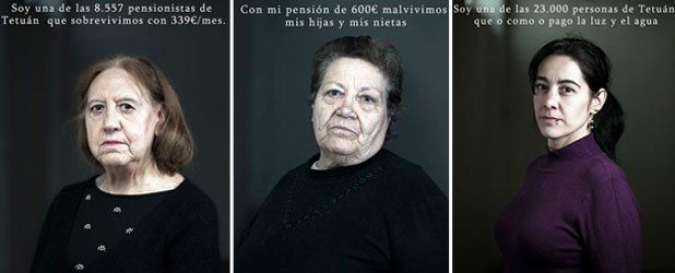 Los británicos dan voz al movimiento ciudadano Invisibles de Tetúan, una campaña iniciada en Madrid en la que los aún afectados por la crisis dan la cara para denunciar su día a día. Los mensajes que mandan son claros: “Yo soy de los que deben decidir entre comer o pagar las facturas”; o “con mi pensión de 600 euros malvivimos mis hijos y mis nietos”, entre otros.