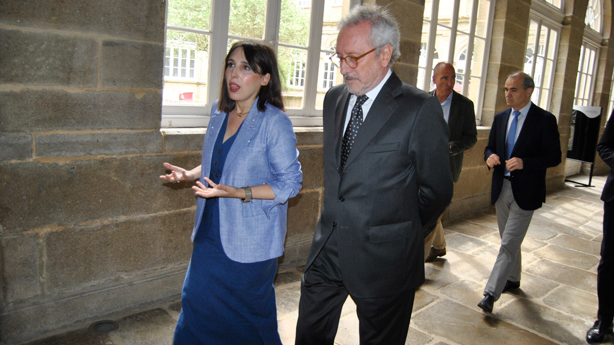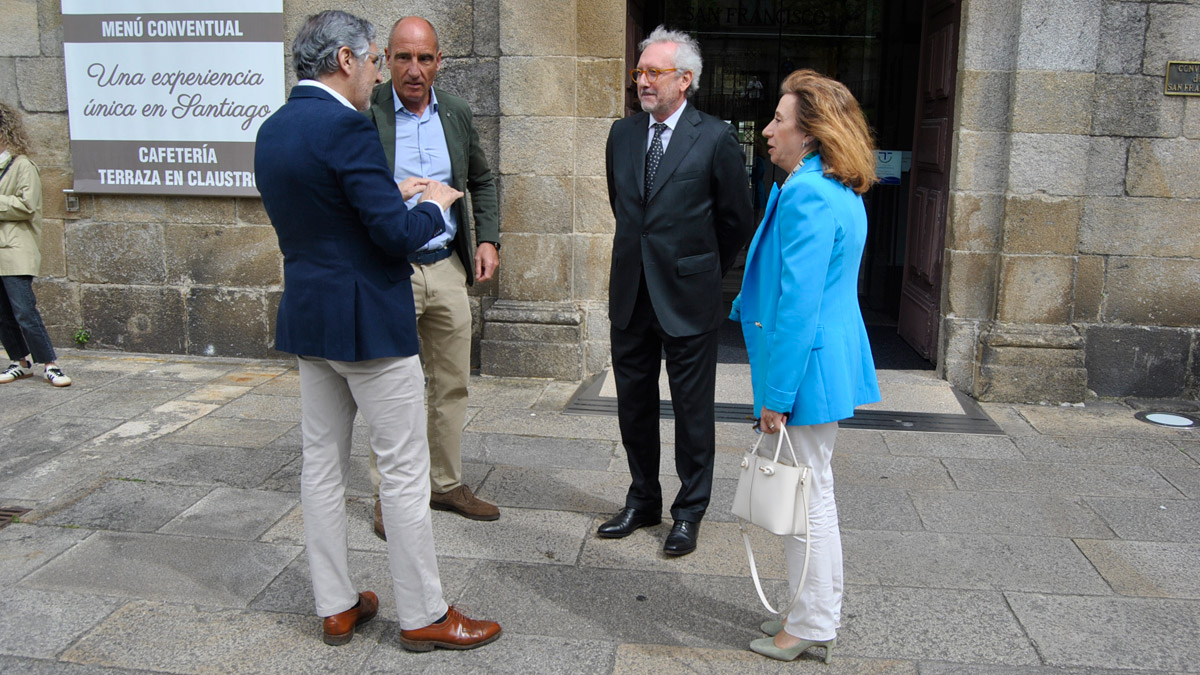La conselleira de Economía se dirige junto al CEO de Economía Digital al salón Carlos V, del Hotel Monumento San Francisco, en Santiago / Pablo Ares Heres