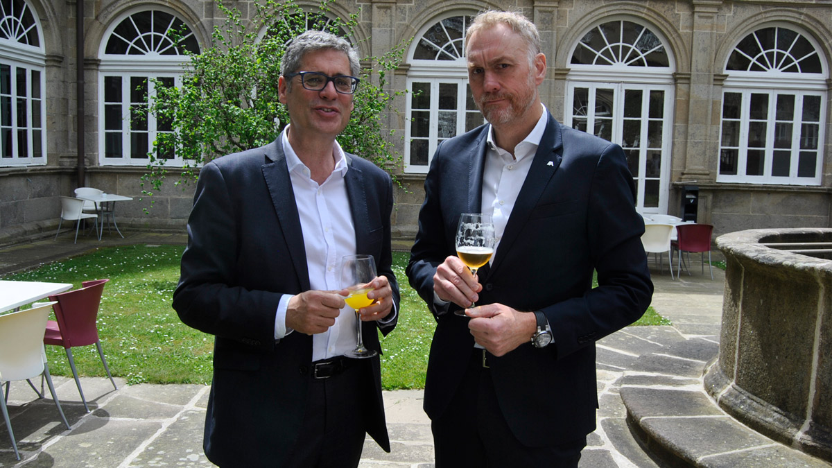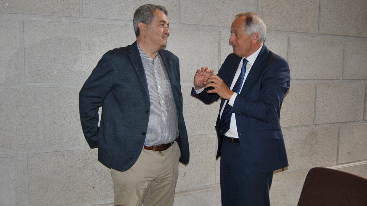 En primer término, Higinio Mougán, gerente de Agaca, junto a Oriol Sarmiento, gerente del Cluster de las Energías Renovables de Galicia / Pablo Ares Heres