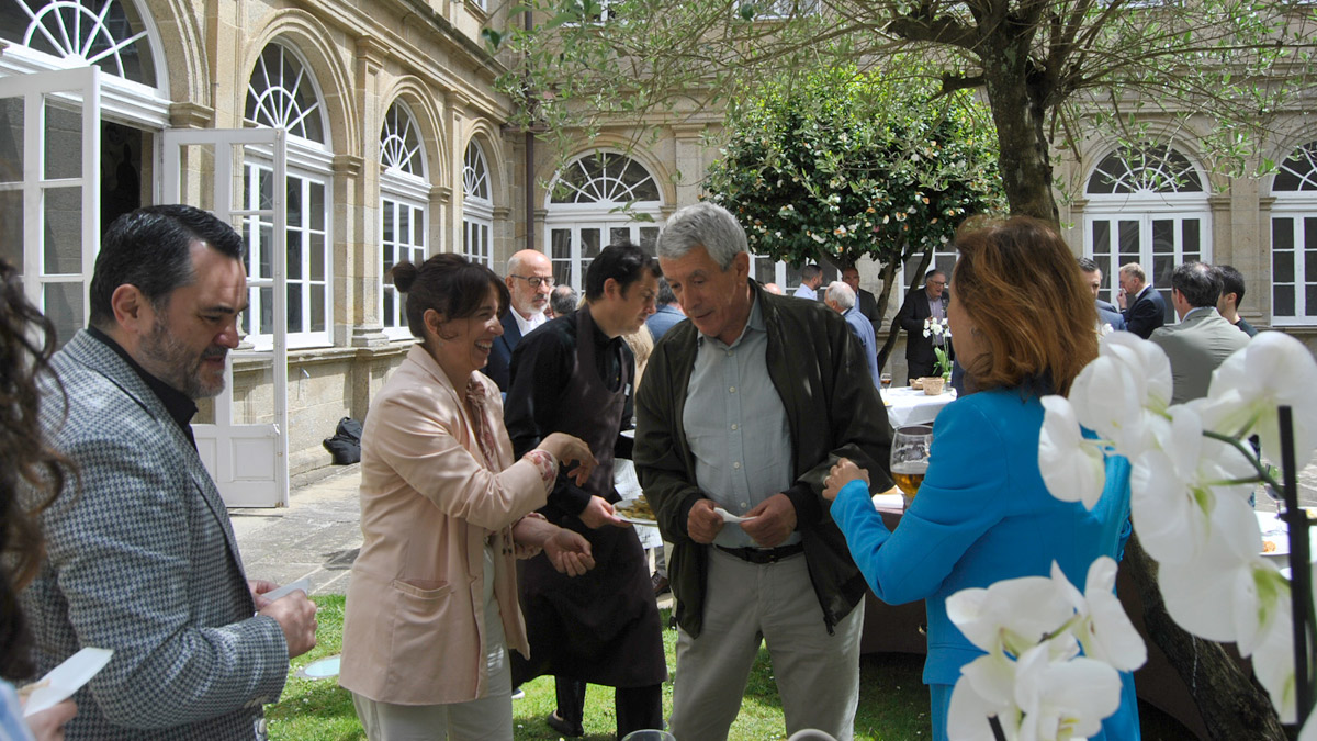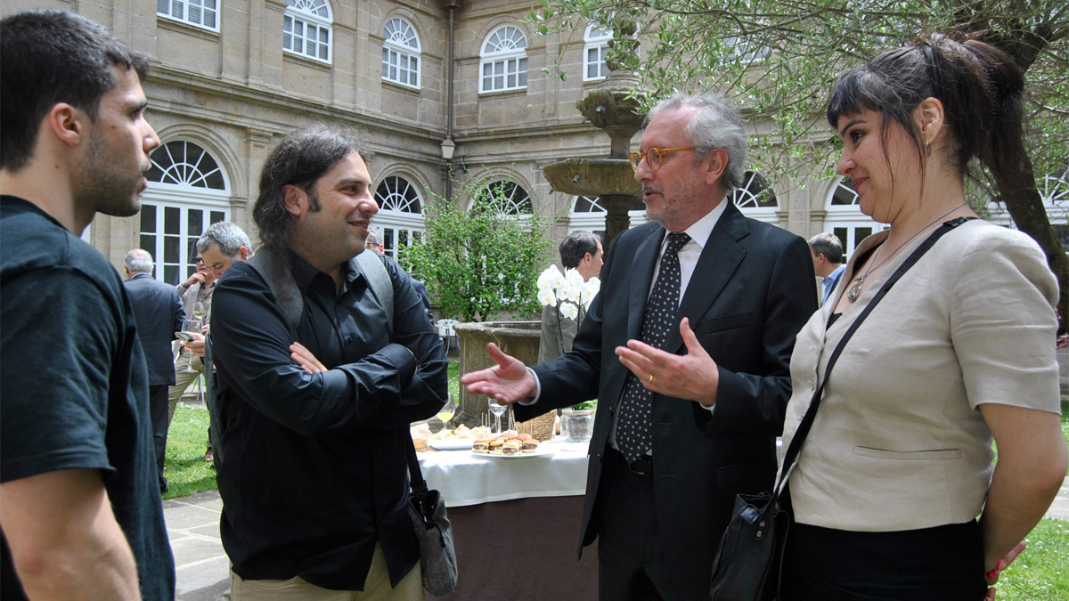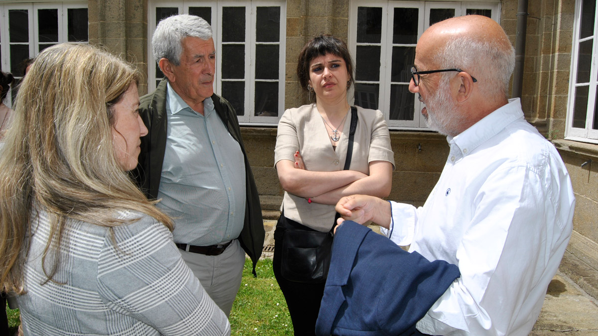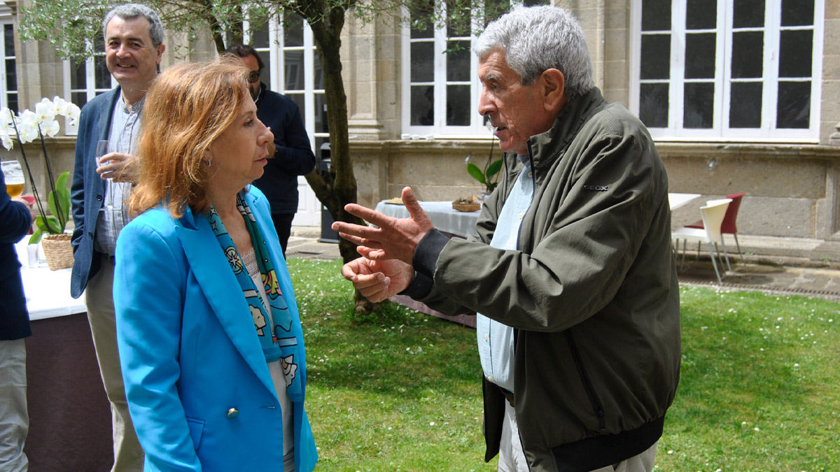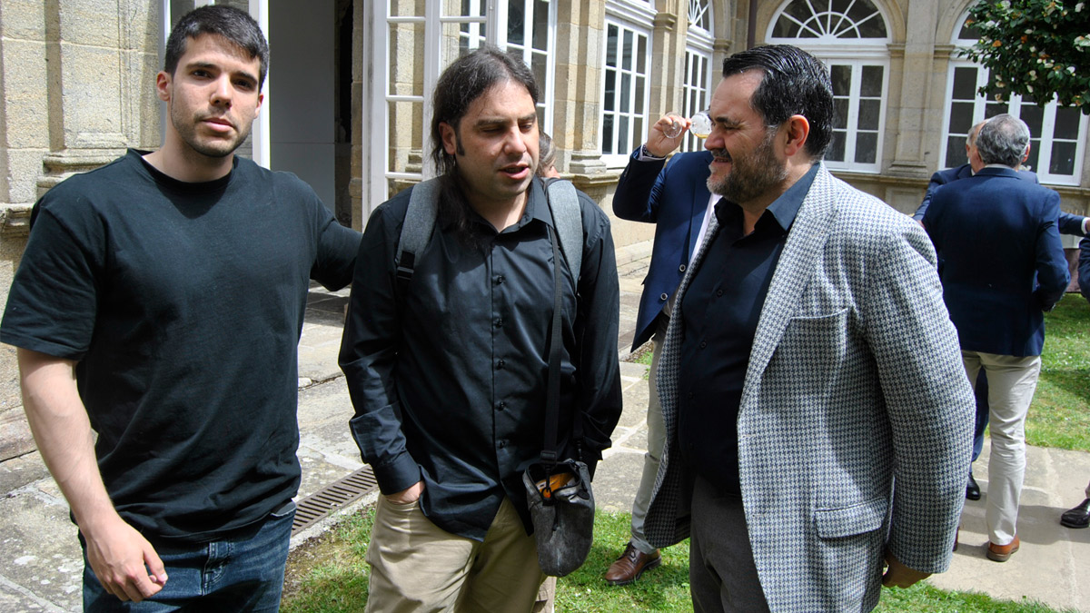 Juan García, a la derecha, departe con el profesor de la UDC Fernando de Llano, centro, y con Marcelino Fernández Mallo / Pablo Ares Heres