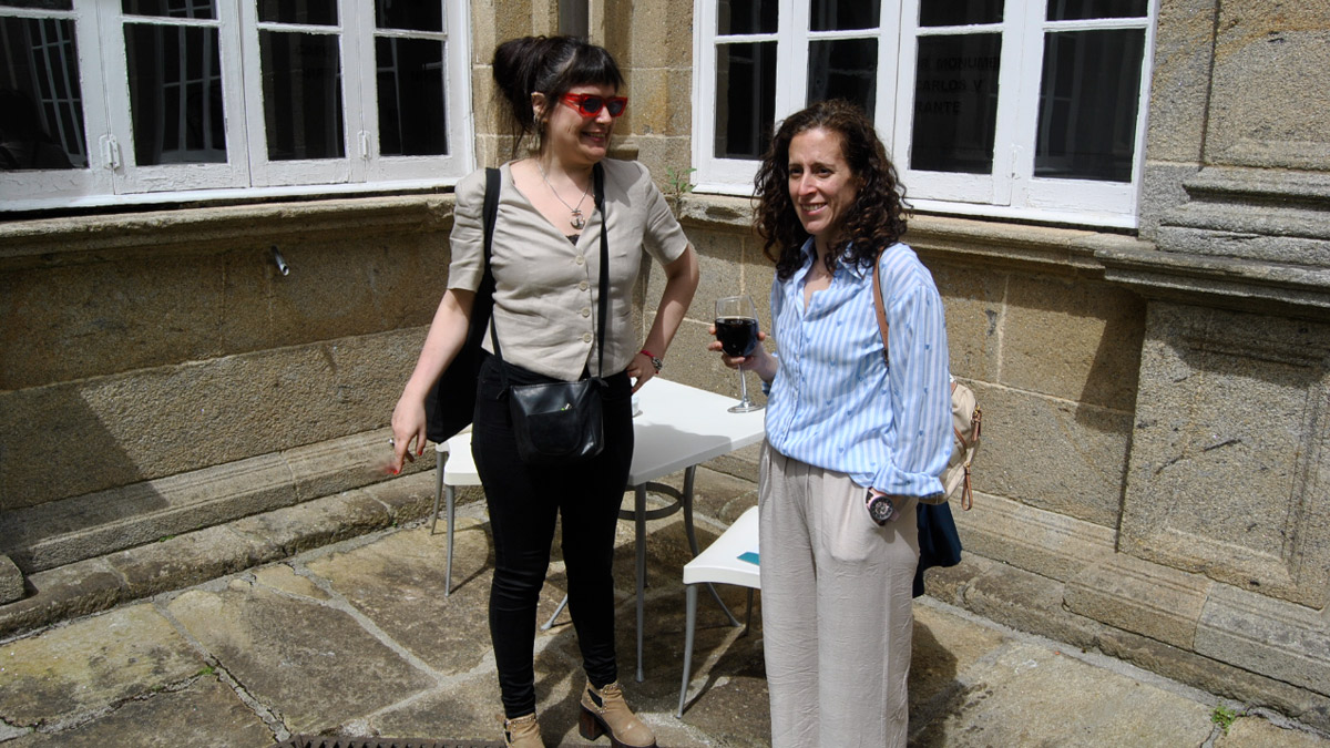 Los periodistas María Méndez y Lois Caeiro departen tras el acto / Pablo Ares Heres