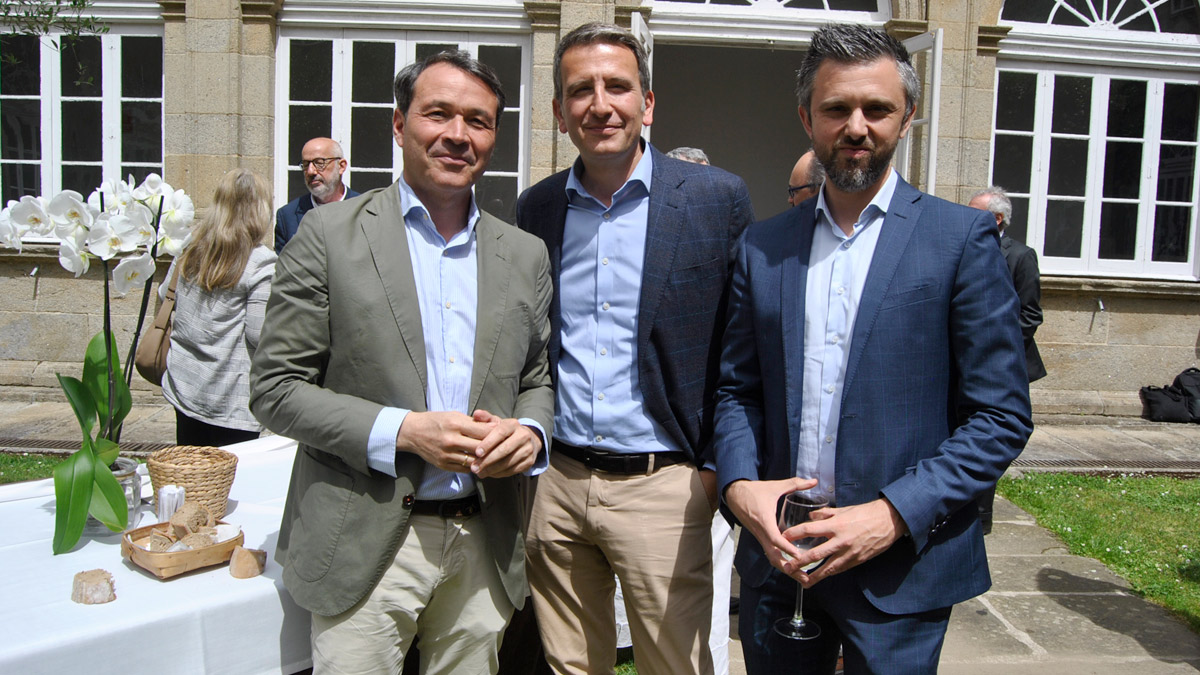 Pablo Núñez, responsable de Relaciones Institucionales de Cobre San Rafael, a la izda, junto a Oriol Sarmiento, gerente del Cluster de Energías Renovables de Galicia, y Diego Mata, socio de Moonoff / Pablo Ares Heres