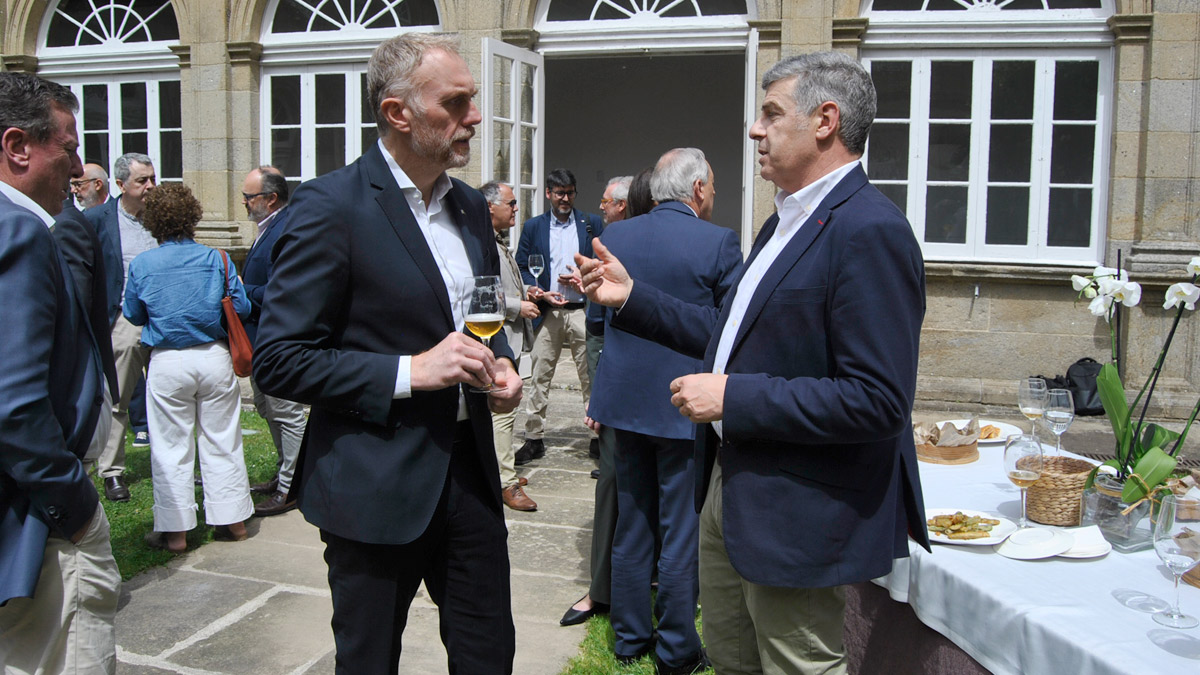 Adolfo Aranda, CFO en ThePost Fiber, charla con Higinio Mougán, de Agaca, en presencia de Julián Rodríguez / Pablo Ares Heres