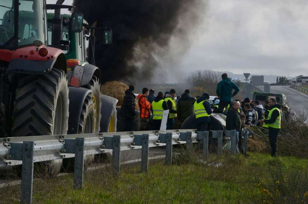 Agricultores e gandeiros cortan a A-52 con tractores e rolos de palla, a 10 de xaneiro de 2026, en Xinzo de Limia, Ourense, Galicia (España) – Rosa Veiga – Europa Press