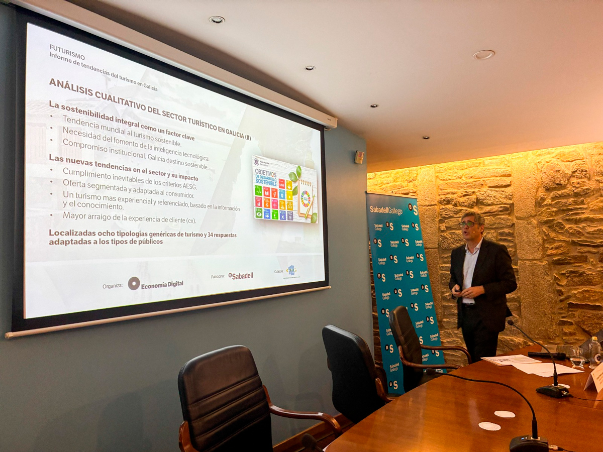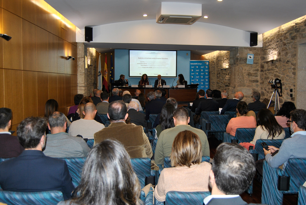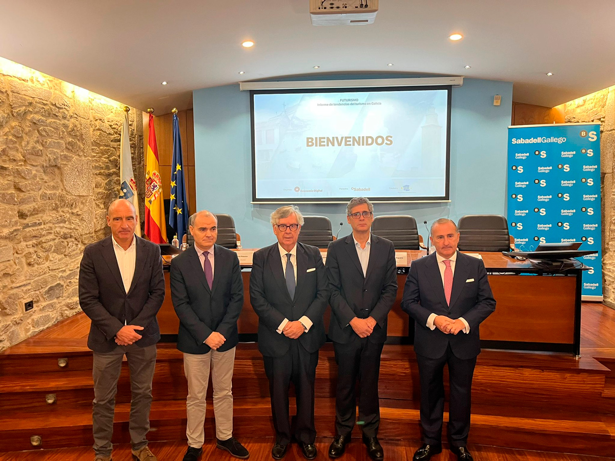 Na segunda fila, de esquerda a dereita, José María Cortés Alonso, director de negocio turístico de Banco Sabadell; Silvia Rumbo Bouso, directora de medios de pago & eCommerce de Banco Sabadell; Ramón Rama, director comercial de Dimensiona; e Juanjo Manso, director de GFM Ideas / Pablo Ares Heres