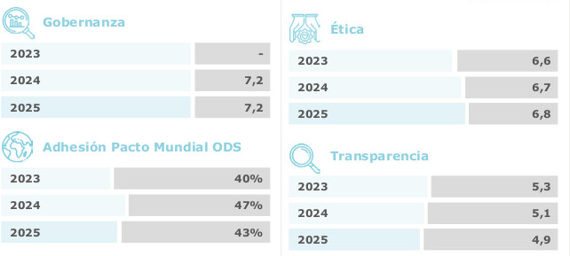 En conxunto, os resultados desta categoría amosan que as empresas galegas do Atlas presentan unha base sólida en materia de bo goberno, con avances na integración da sostibilidade nas estruturas de decisión e na consolidación de políticas éticas. Non obstante, a transparencia informativa e a adhesión a marcos internacionais de compromiso continúan a ser ámbitos nos que existe marxe de mellora, especialmente nun contexto no que a rendición de contas empresarial está chamada a adquirir unha relevancia crecente.