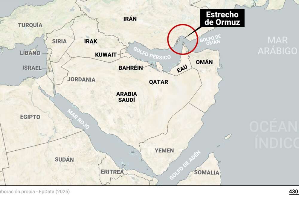 (Foto de ARQUIVO) Mapa de localización do estreito de Ormuz e os países que o rodean no golfo Pérsico. O estreito de Ormuz, un dos pasos comerciais máis importantes do mundo e un dos principais puntos quentes no conflito no Oriente Próximo. Europa Press / Europa Press 23 XUÑO 2025;EPDATAINFOGRAFIA;DATOS INTERNACIONAL 23/6/2025