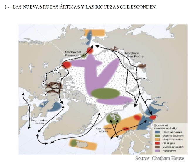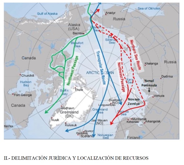 "El Polo Norte abre nuevas posibilidades, aceleradas por el cambio climático. Estas nuevas rutas, el Paso Norte-Oeste y el Paso Norte-Este, pueden cambiar el panorama marítimo mundial"