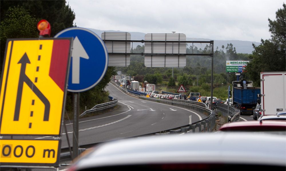 Colas de más de una hora en la A-55 para cruzar desde Tui a Portugal. Así ha sido el arranque de la primera jornada tras el cierre de fronteras decretado por el Gobierno luso para garantizar la seguridad durante la visita del papa Francisco al santuario de Fátima, una medida que afecta a los vehículos que transitan por esta vía.