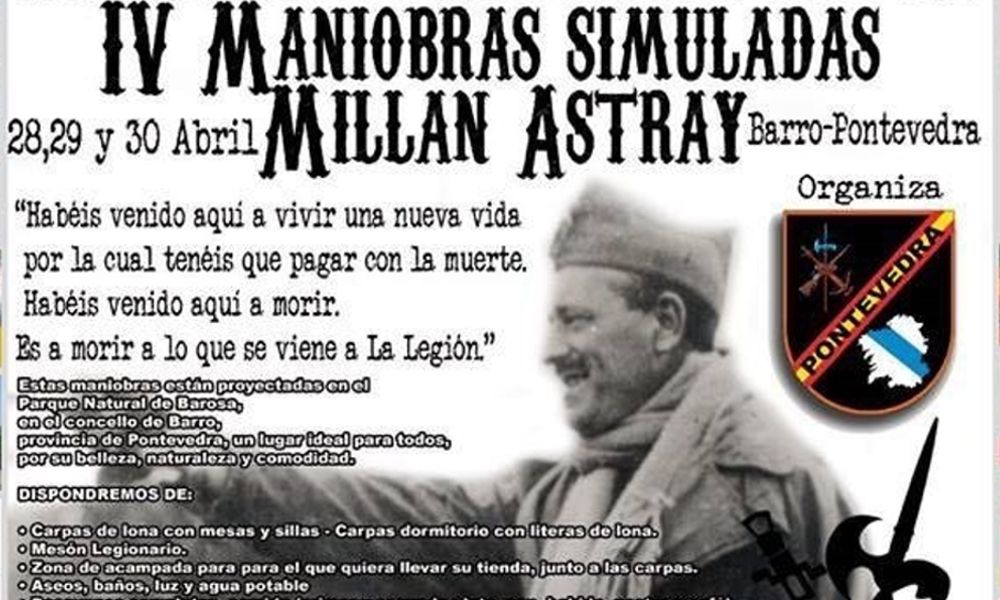El cartel, retirado nada más conocer el contenido del evento, anunciaba unas jornadas para veteranos en el Concelloo de Barro (Pontevedra), bajo el título ‘IV Maniobras Simuladas Millán Astray’, y que la Diputación apoyó por tratarse de un acto de veteranos militares.