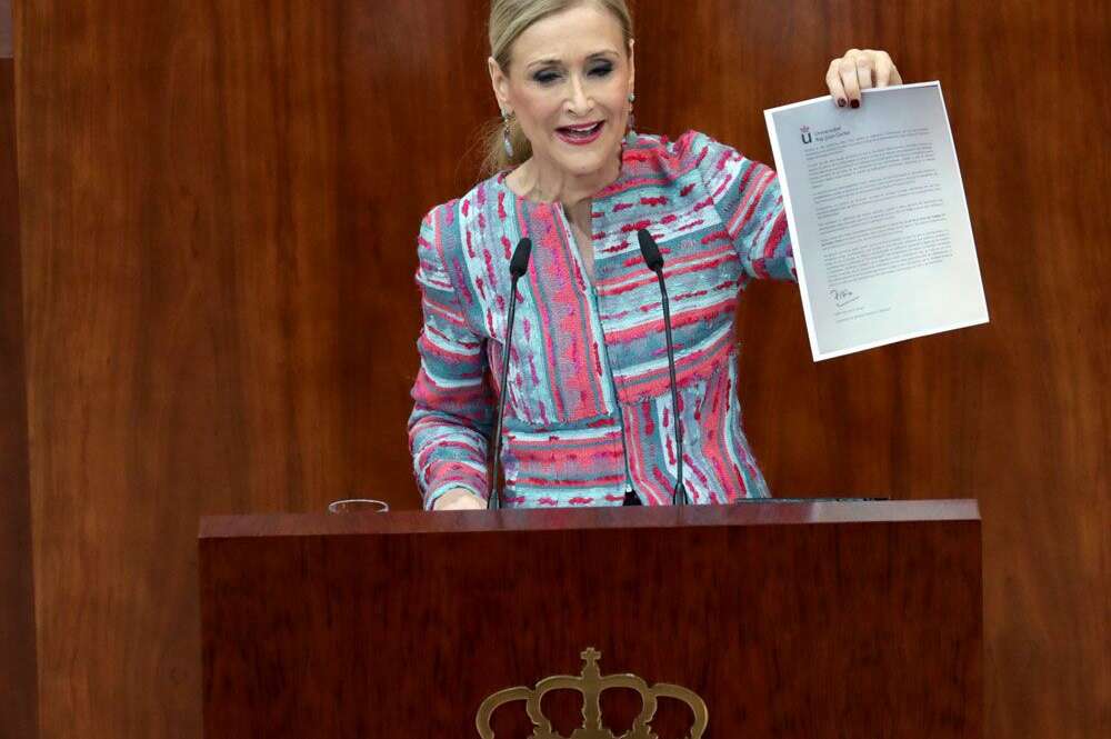 La presidenta de la comuniudad de Madrid, acorralada por la oposición, ha subrayado que su máster es «perfectamente real y legal». Según Cifuentes, el pleno que se está celebrando este miércoles en la Asamblea de Madrid es «irregular» y «antirreglamentario».