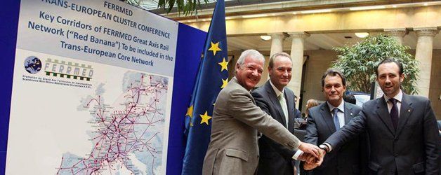 Conscientes de la necesidad capital de contar con el visto bueno y la financiación de la UE y de la fuerte competencia que supone el Corredor Central, los presidentes de Catalunya, Comunidad Valenciana, Baleares y Murcia y los representantes del lobby empresarial han hecho piña en defensa del Corredor Mediterráneo en pleno cogollo de la UE. El objetivo: conseguir que el proyecto figure el próximo 19 de octubre en el borrador de la gran red ferroviaria europea que presentará la Comisión.