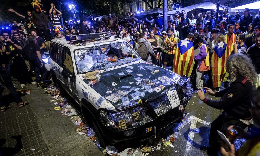 La denuncia busca la apertura de un procedimiento en la Audiencia Nacional (AN) e identificar a las personas que provocaron los destrozos en los vehículos de la Guardia Civil que estaban aparcados cerca de los departamentos de la Generalitat.