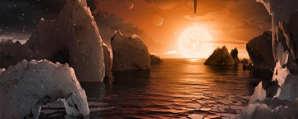 La NASA ha anunciado este miércoles el descubrimiento de siete exoplanetas (planetas fuera del Sistema Solar) de tamaño similar al de la Tierra. Girarían alrededor de una estrella fría. Tres de ellos se encuentran en la zona «habitable» de esta estrella. Esto significa que podrían tener océanos de agua en sus superficies, aumentando así la posibilidad de que este sistema planetario pueda albergar vida.