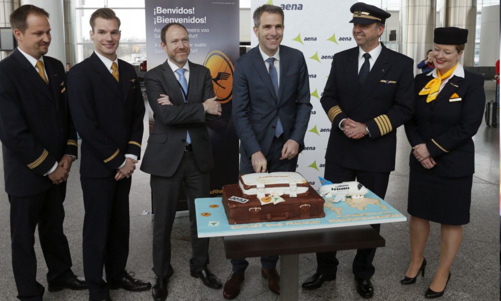 Lufthansa comienza sus operaciones desde el aeropuerto de Santiago, que esta mañana ha recibido el vuelo inaugural procedente de Frankfurt. La aerolínea alemana conectará la capital gallega tres veces (lunes, jueves y viernes) por semana con su hub internacional de Frankfurt y, a partir del 9 de abril, estrenará el enlace directo desde Lavacolla con Múnich.